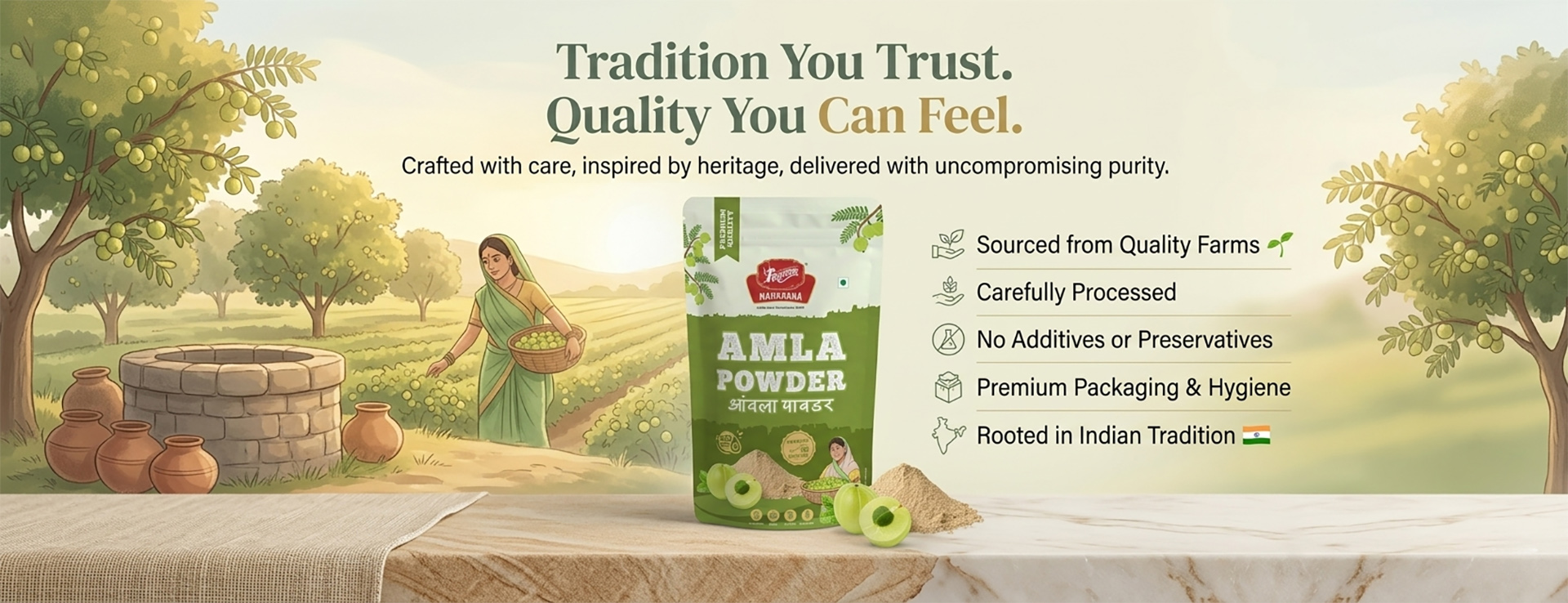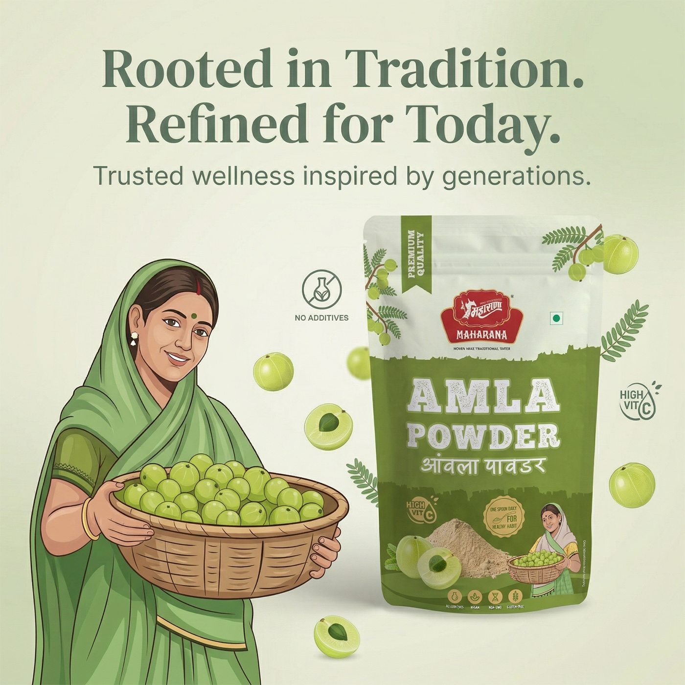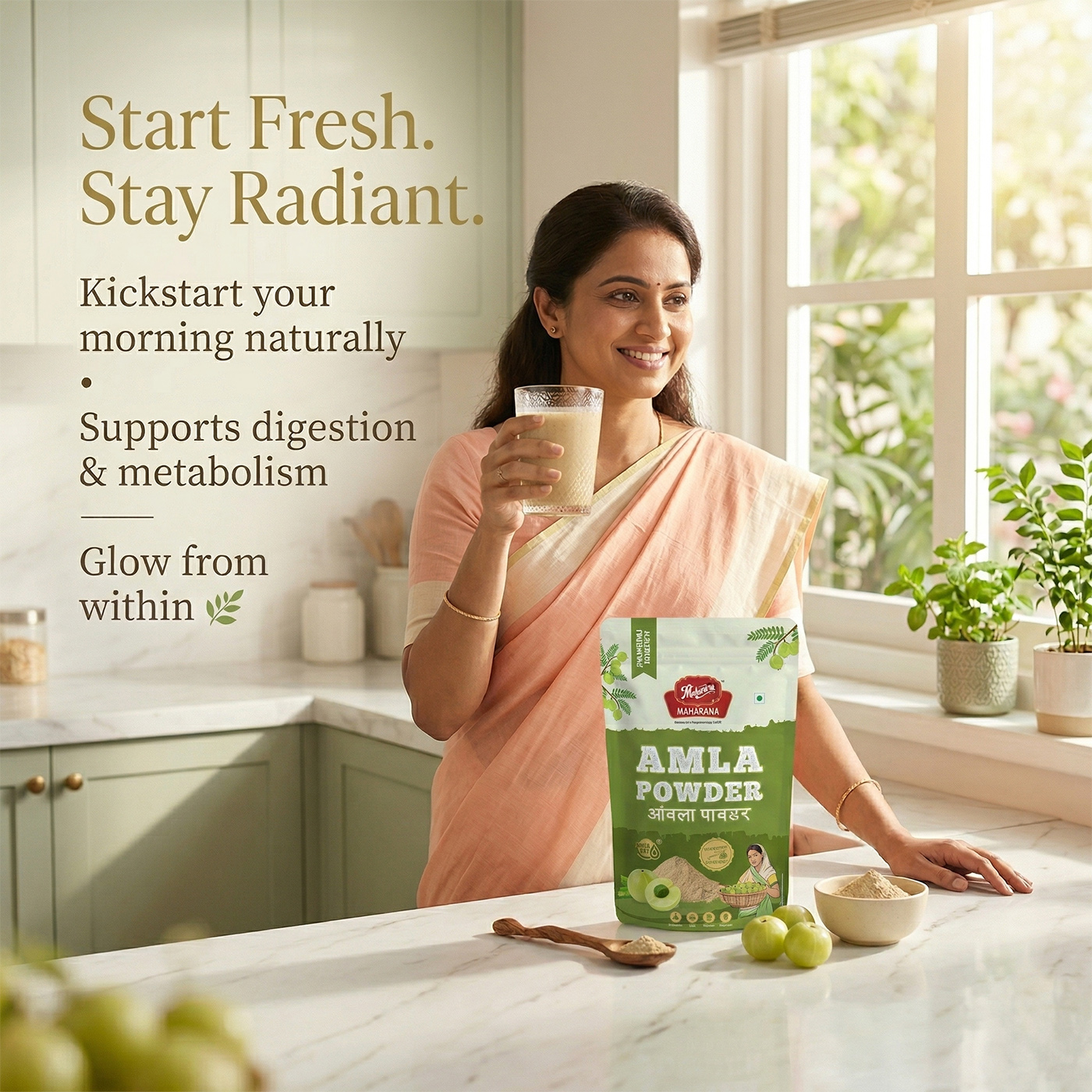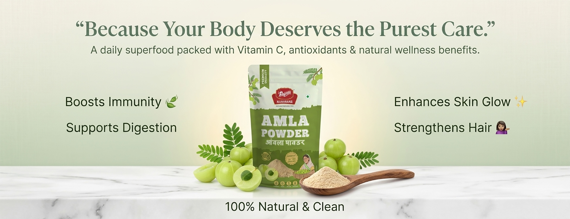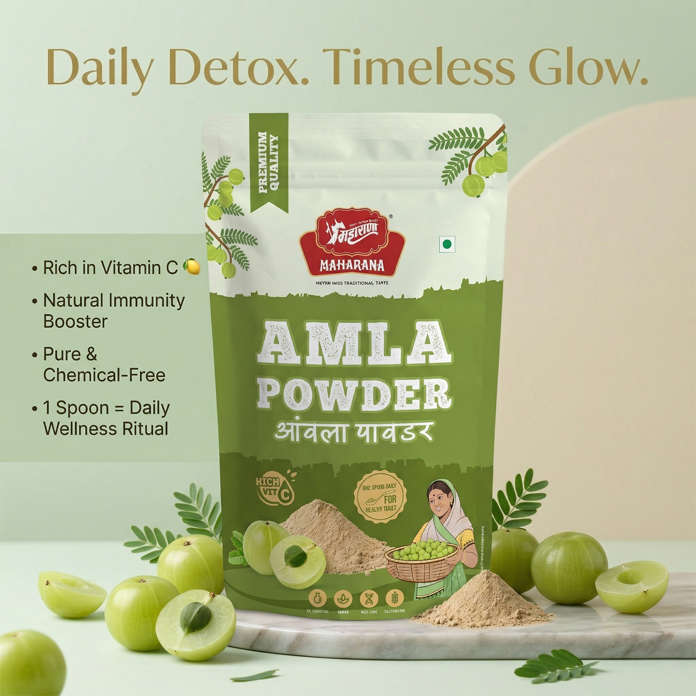 Amla powder supports immunity, improves digestion, and promotes overall wellness. it also helps in maintaining healthier skin and hair.