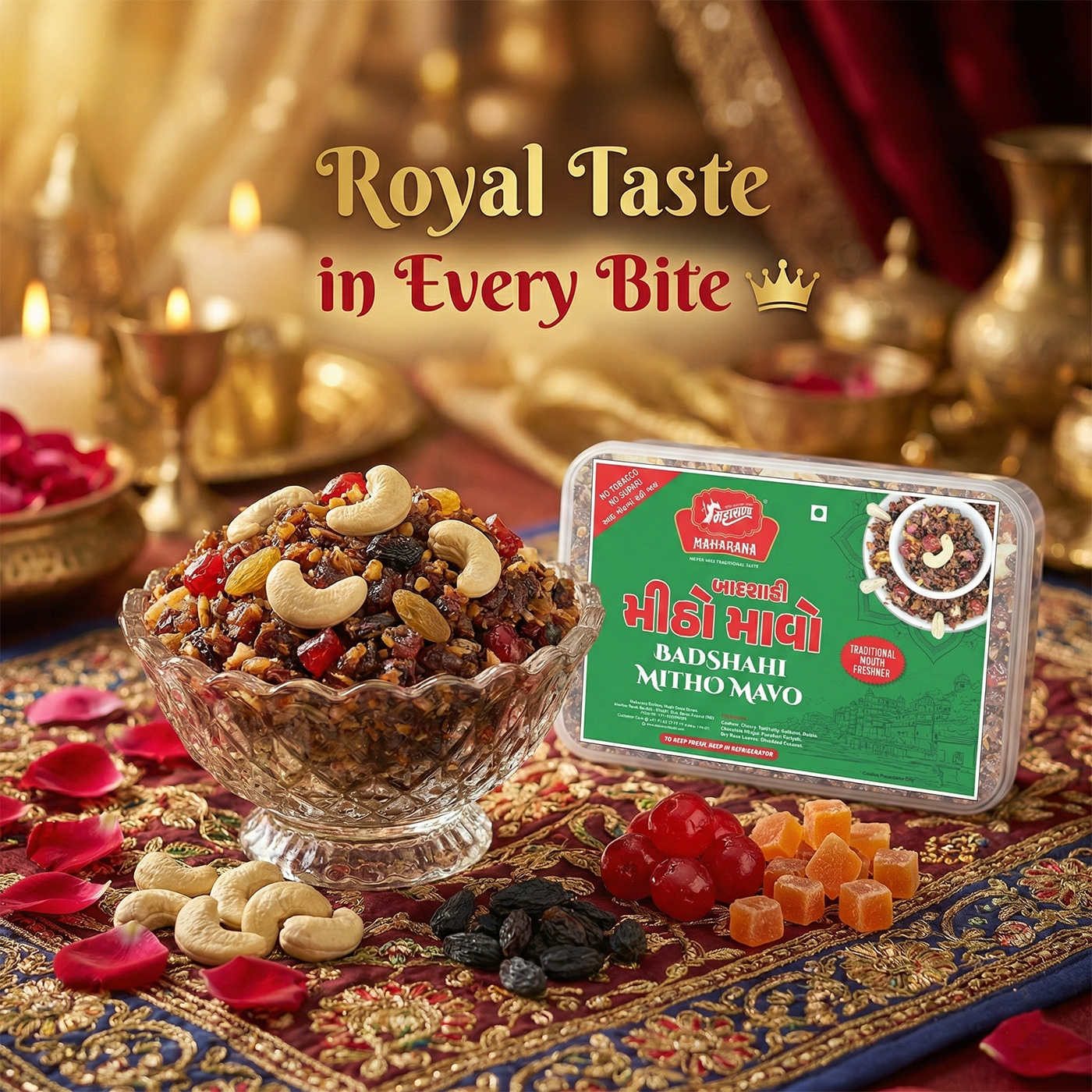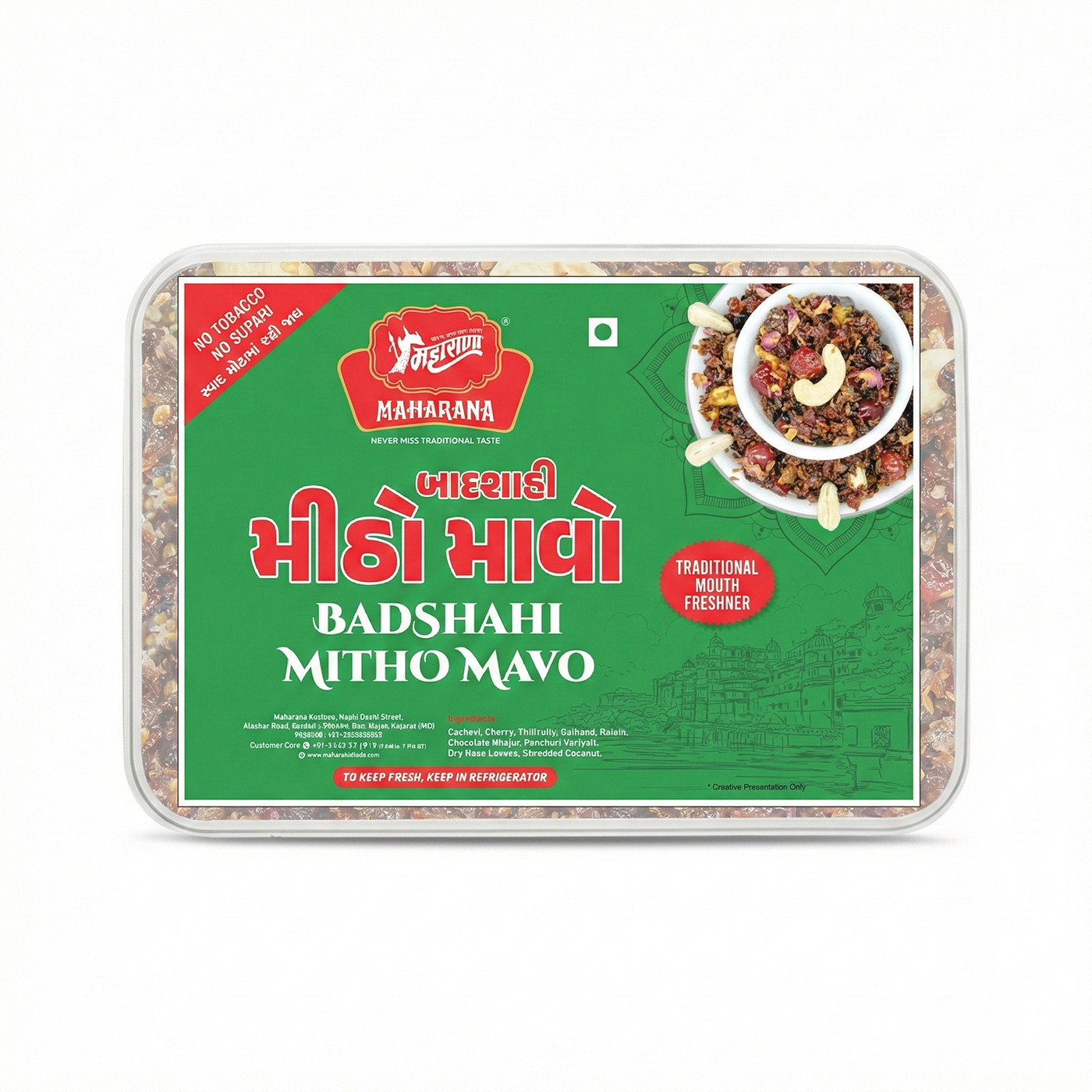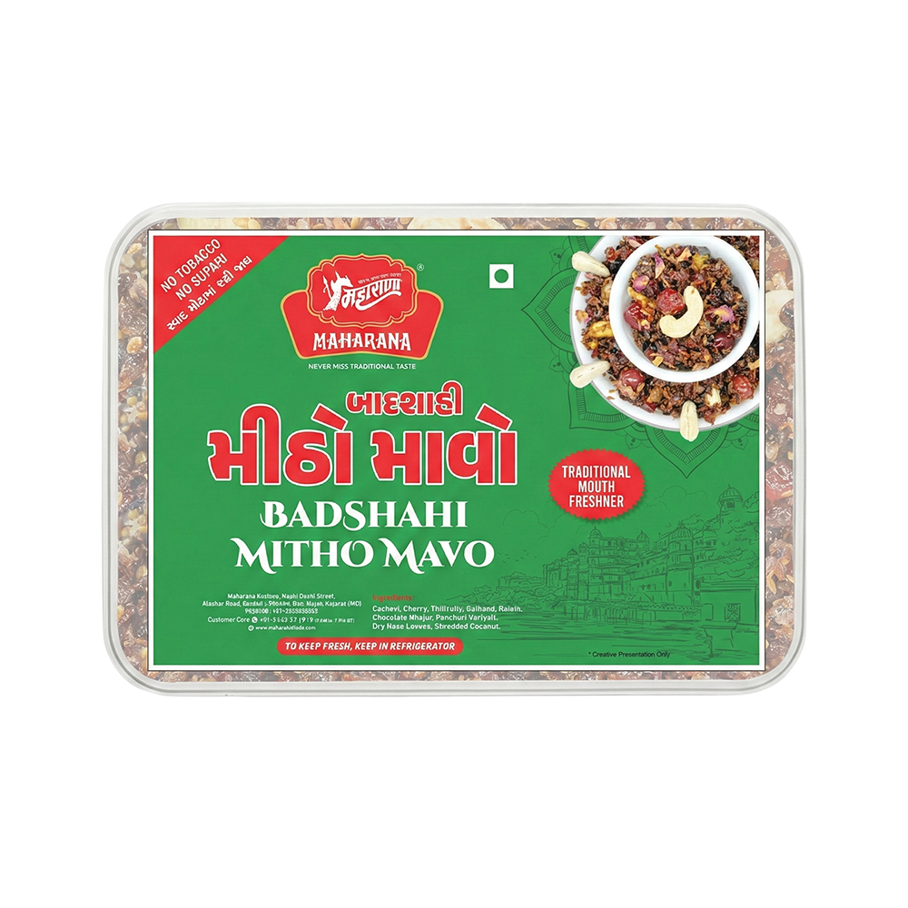Badshahi Mitho Mavo is an exceptional blend of flavors that leave a lasting impression. It's perfect for freshening breath after meals.