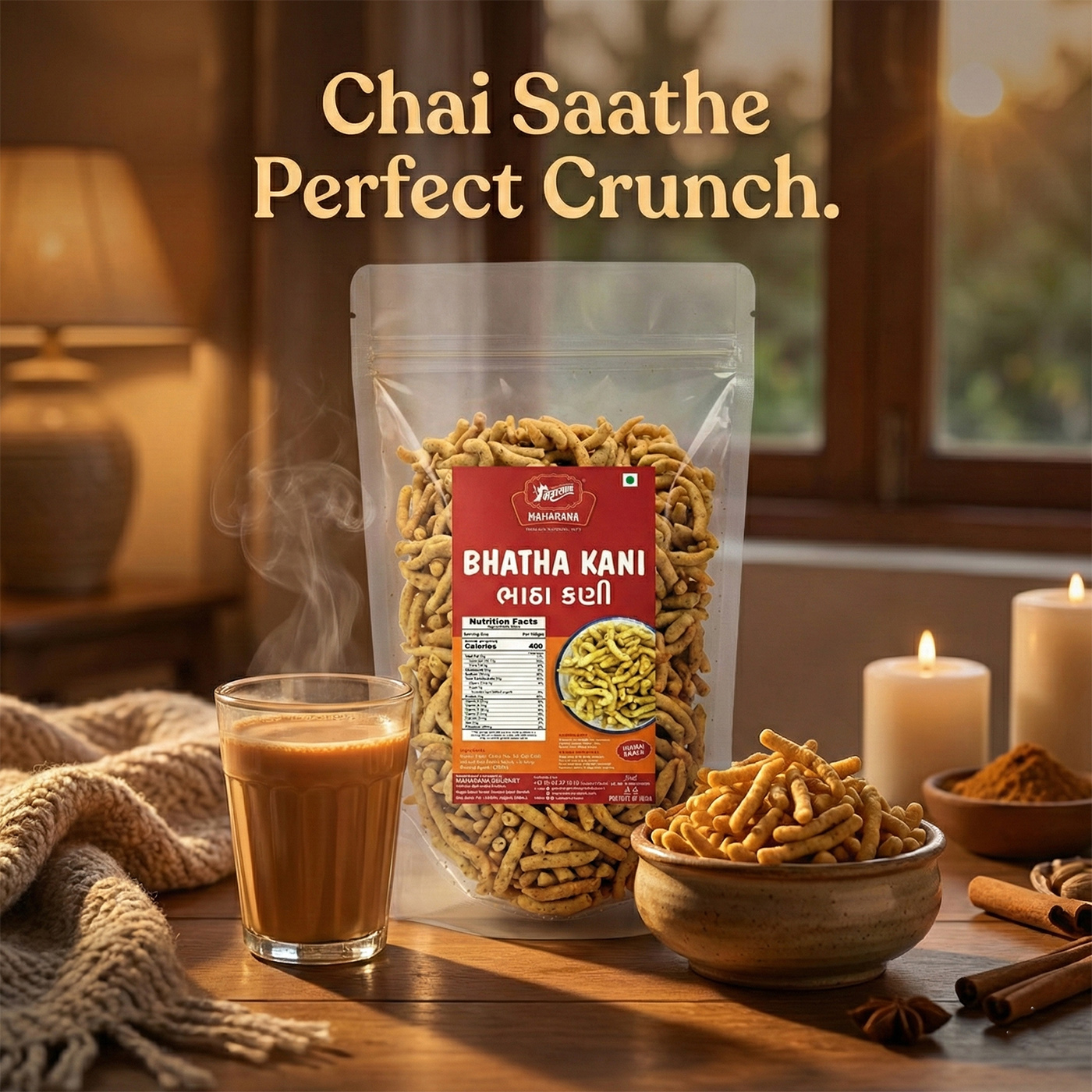 Bhatha kani is a popular traditional teatime snack from bhatha village in surat, gujarat. it is made from gram flour and indian spices, offering a spicy and crunchy experience.