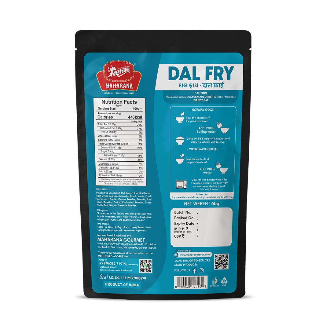 Maharana dal fry offers a quick and convenient way to enjoy a traditional, nutritious indian lentil dish made with natural ingredients, free from artificial additives, suitable for a gluten-free diet, and ready in just 5 minutes.