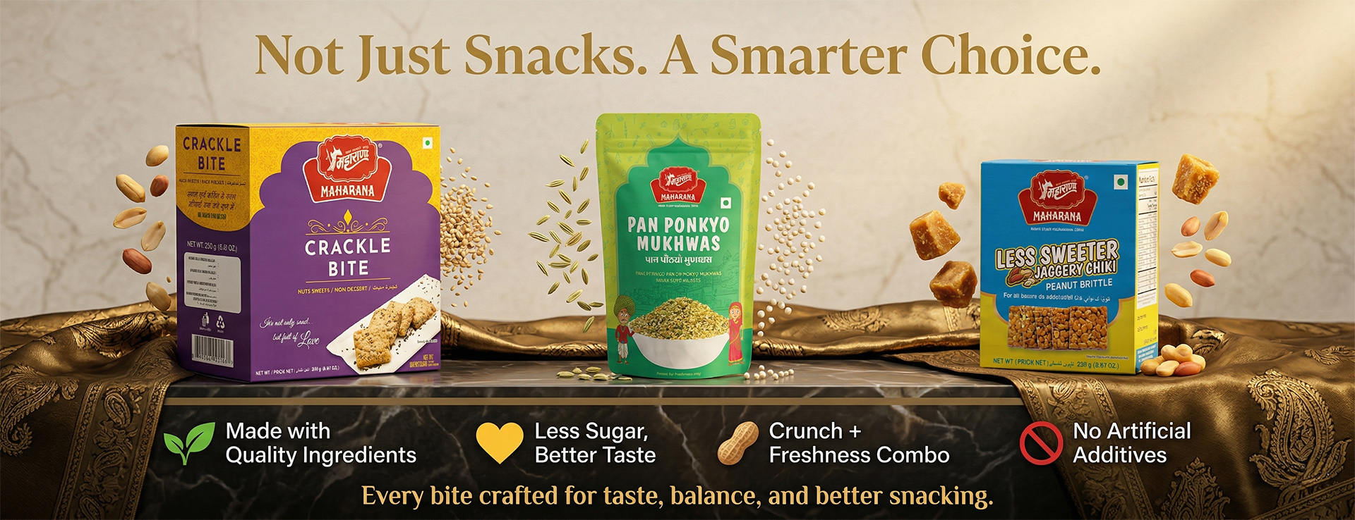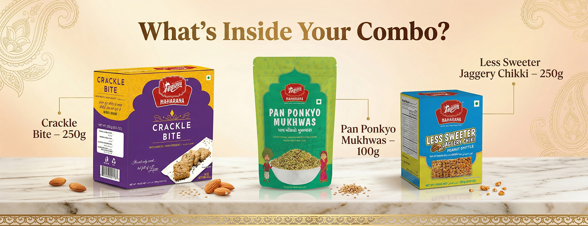 The combo offers a guilt-light indulgence with jaggery chikki for natural sweetness, crackle bite for crunch, and refreshing mukhwas to aid digestion after meals.