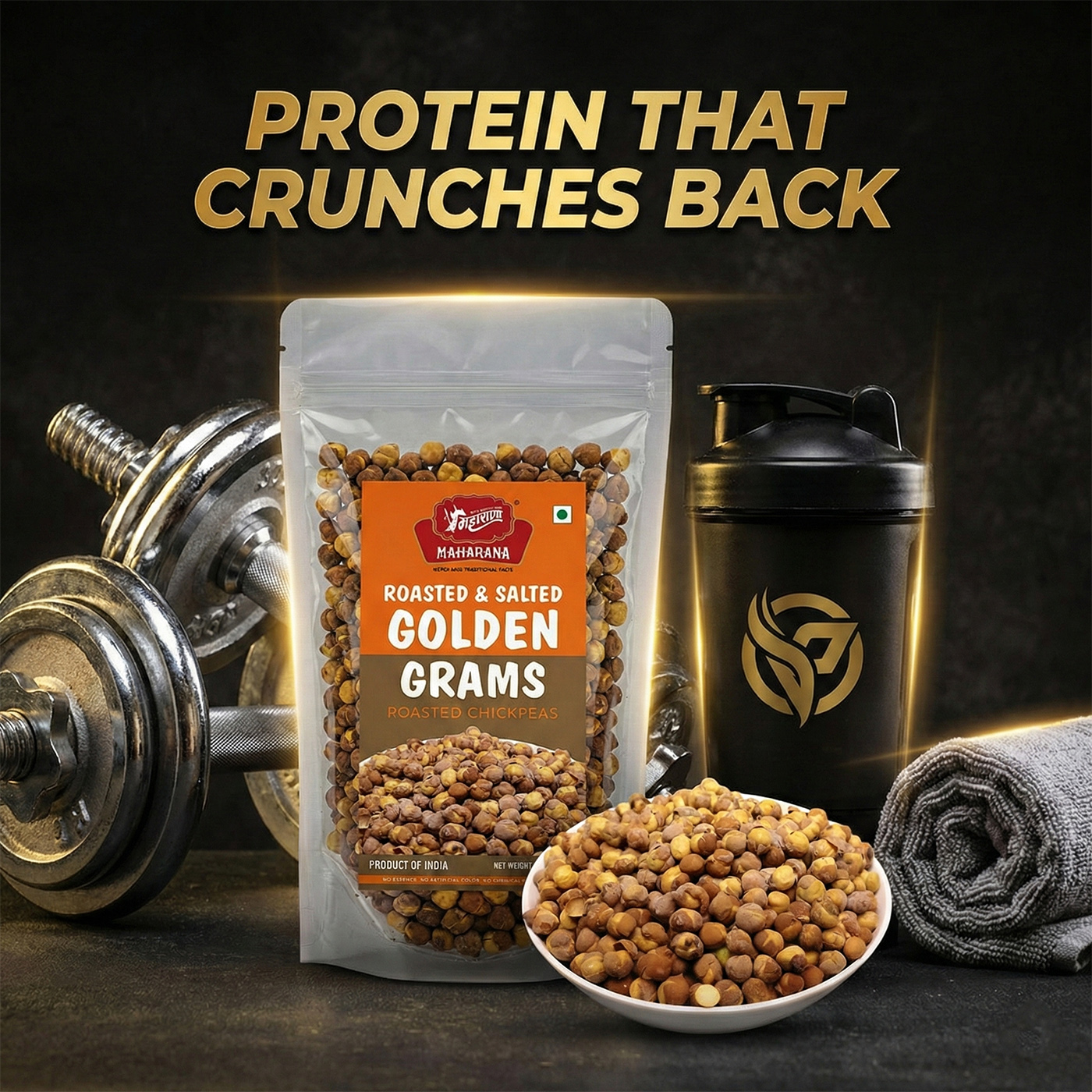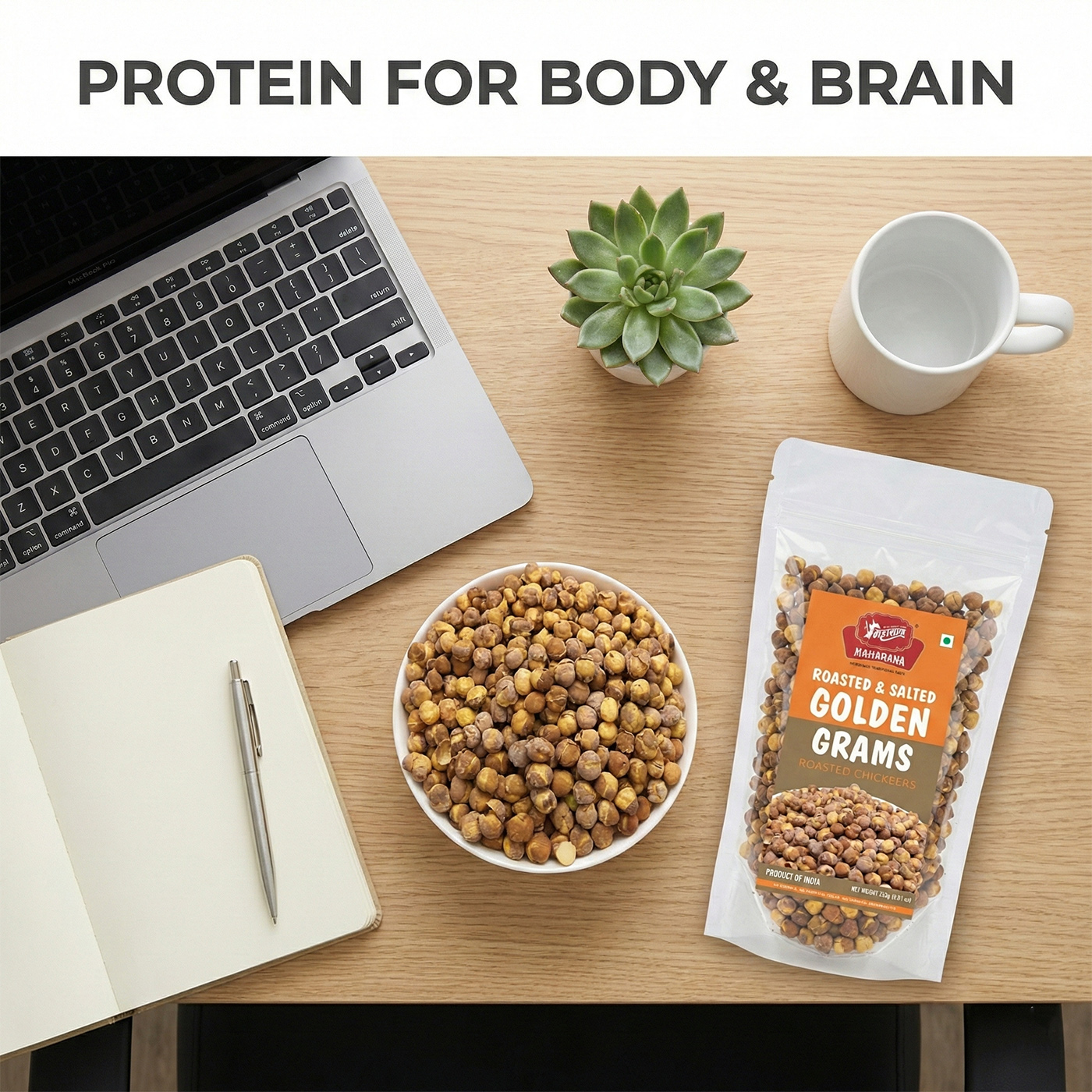 Golden chana is high in protein and fiber, making it an excellent healthy snack option that supports nutrition for both adults and kids.
