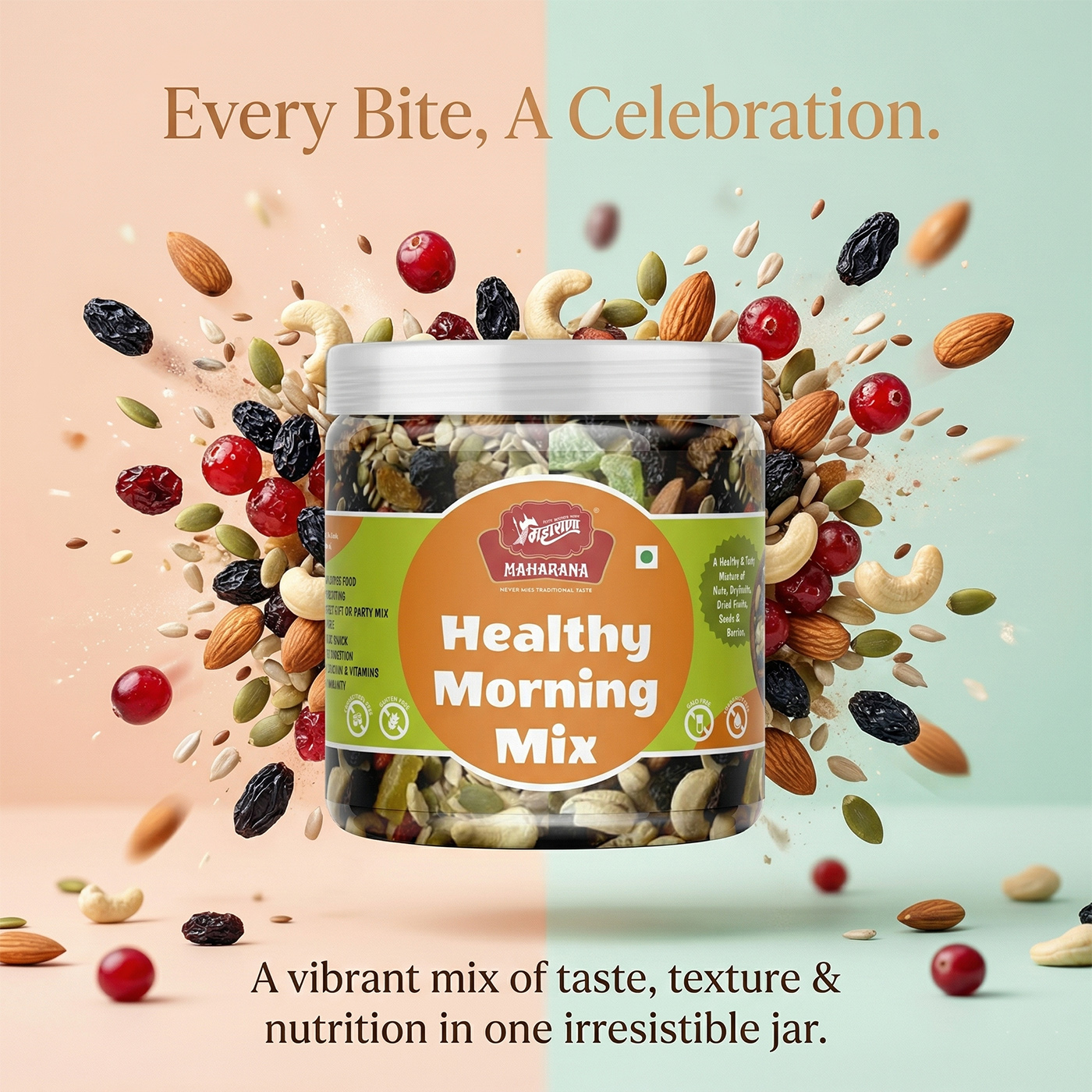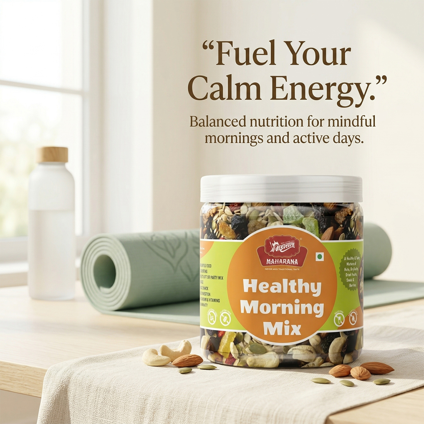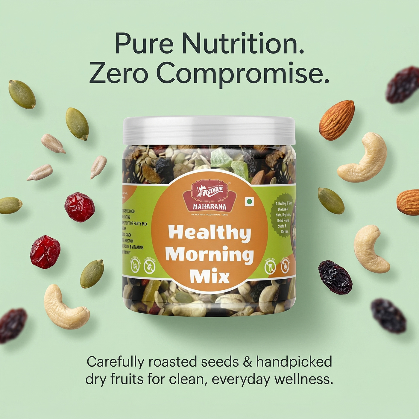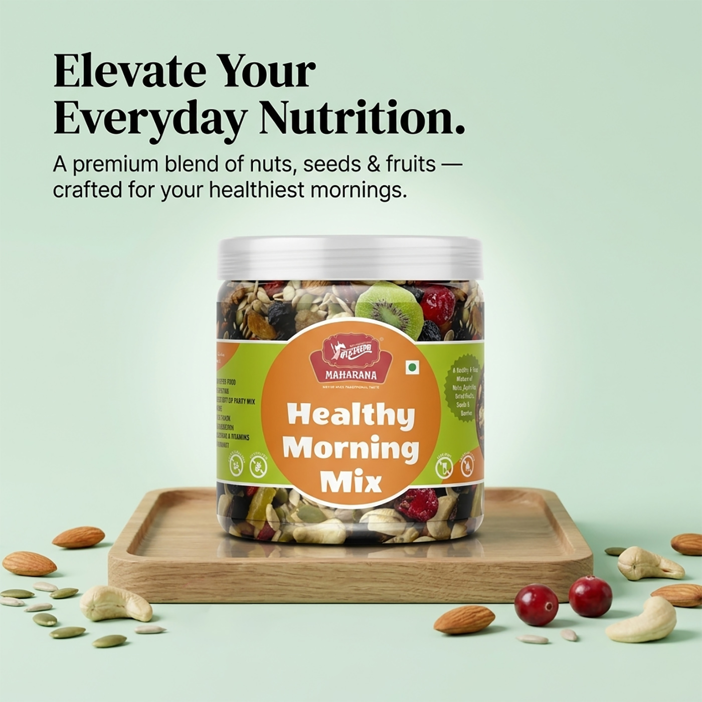 Healthy morning mix is a nutritious blend of dry fruits, essential seeds, and dehydrated berries. it is designed to provide a rich source of vitamins, fiber, iron, and proteins suitable for all age groups.