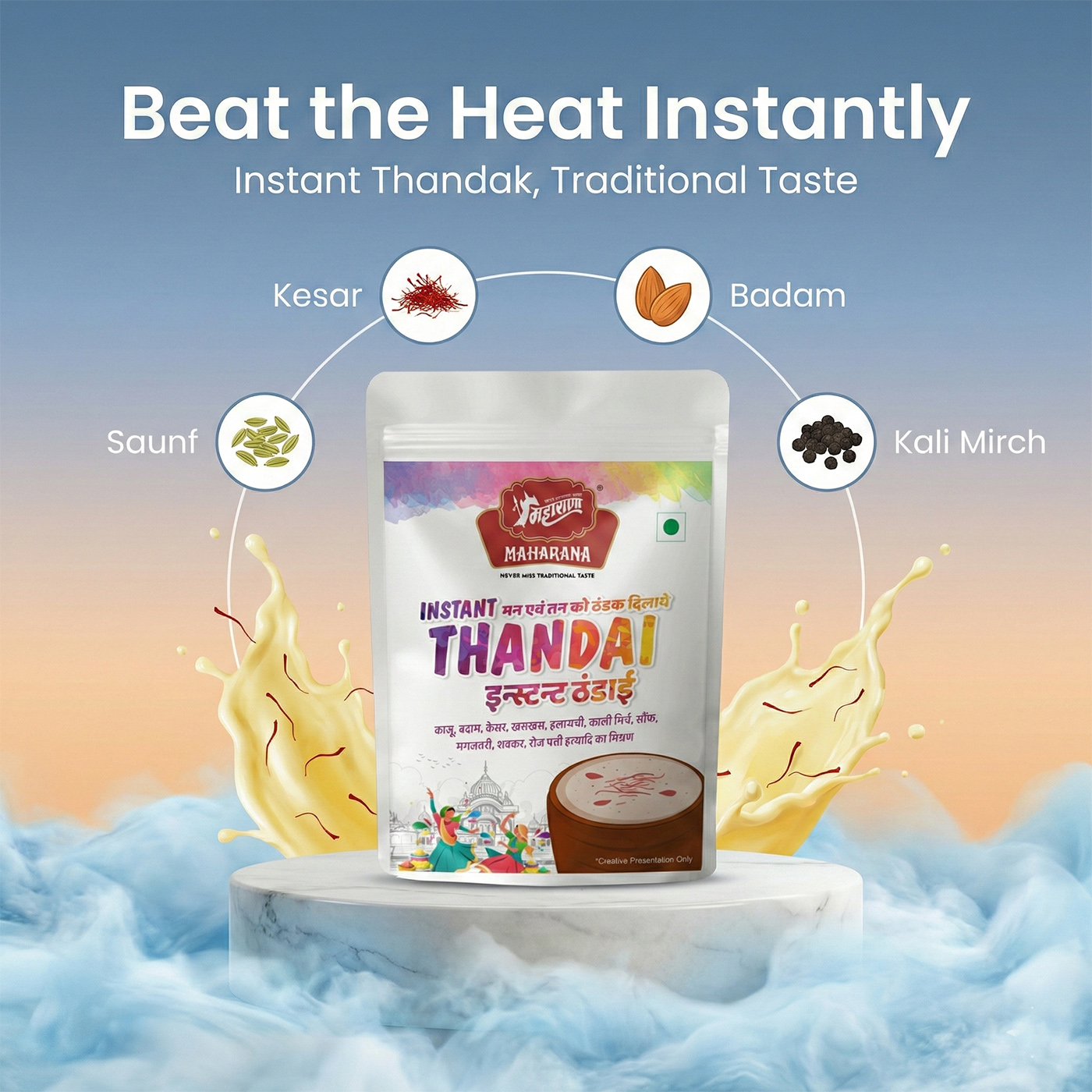 Instant thandai offers a refreshing, nutritious drink rich in dry fruits and spices, which can help cool the body, provide energy, and enhance the festive spirit with authentic royal flavors.
