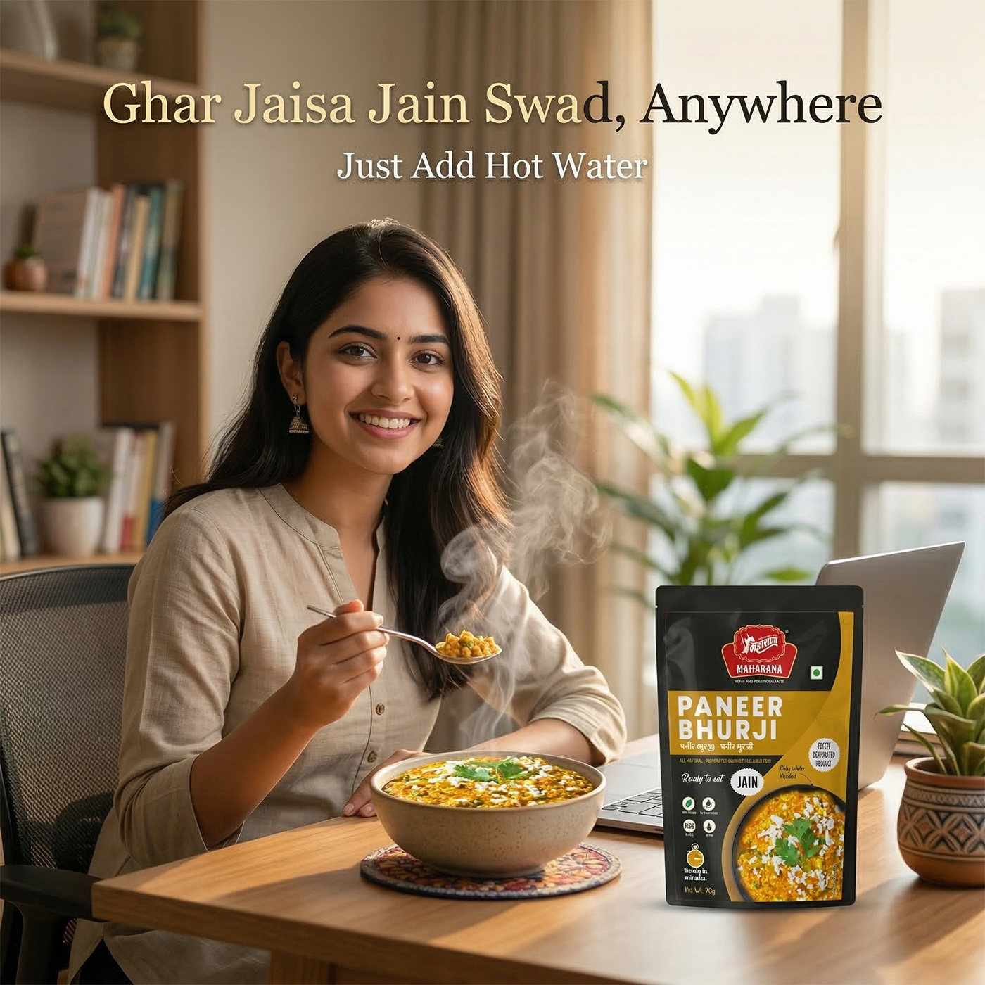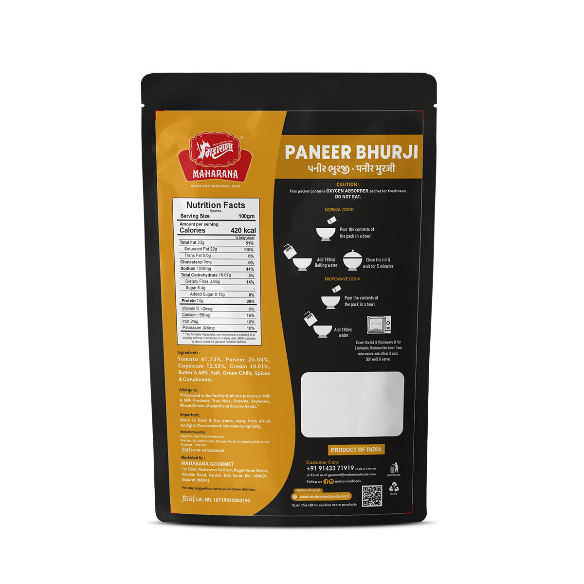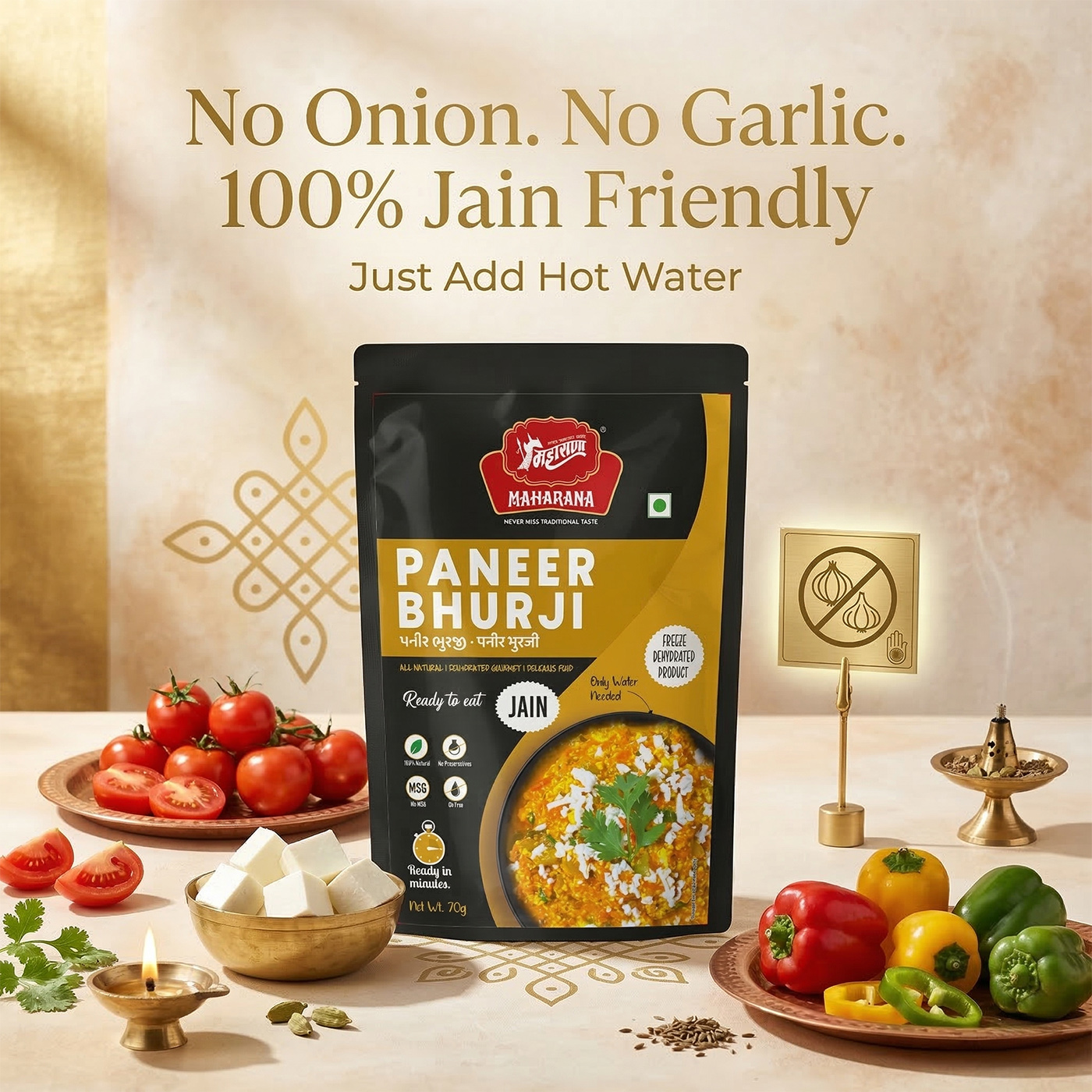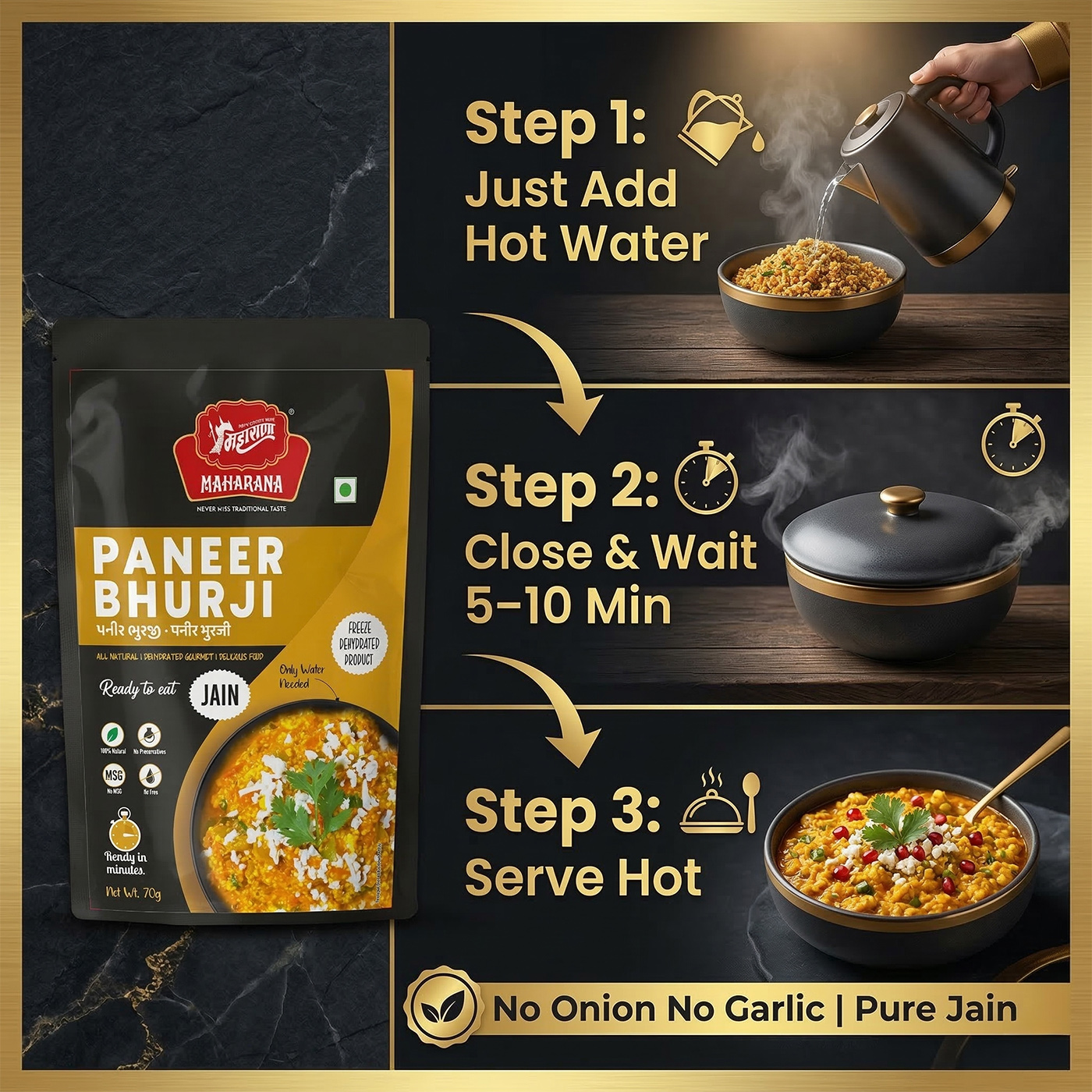 Jain paneer bhurji is a ready to eat north indian dish made with indian cottage cheese called paneer, herbs, and ground spices. it is inspired by traditional recipes and requires minimal preparation.
