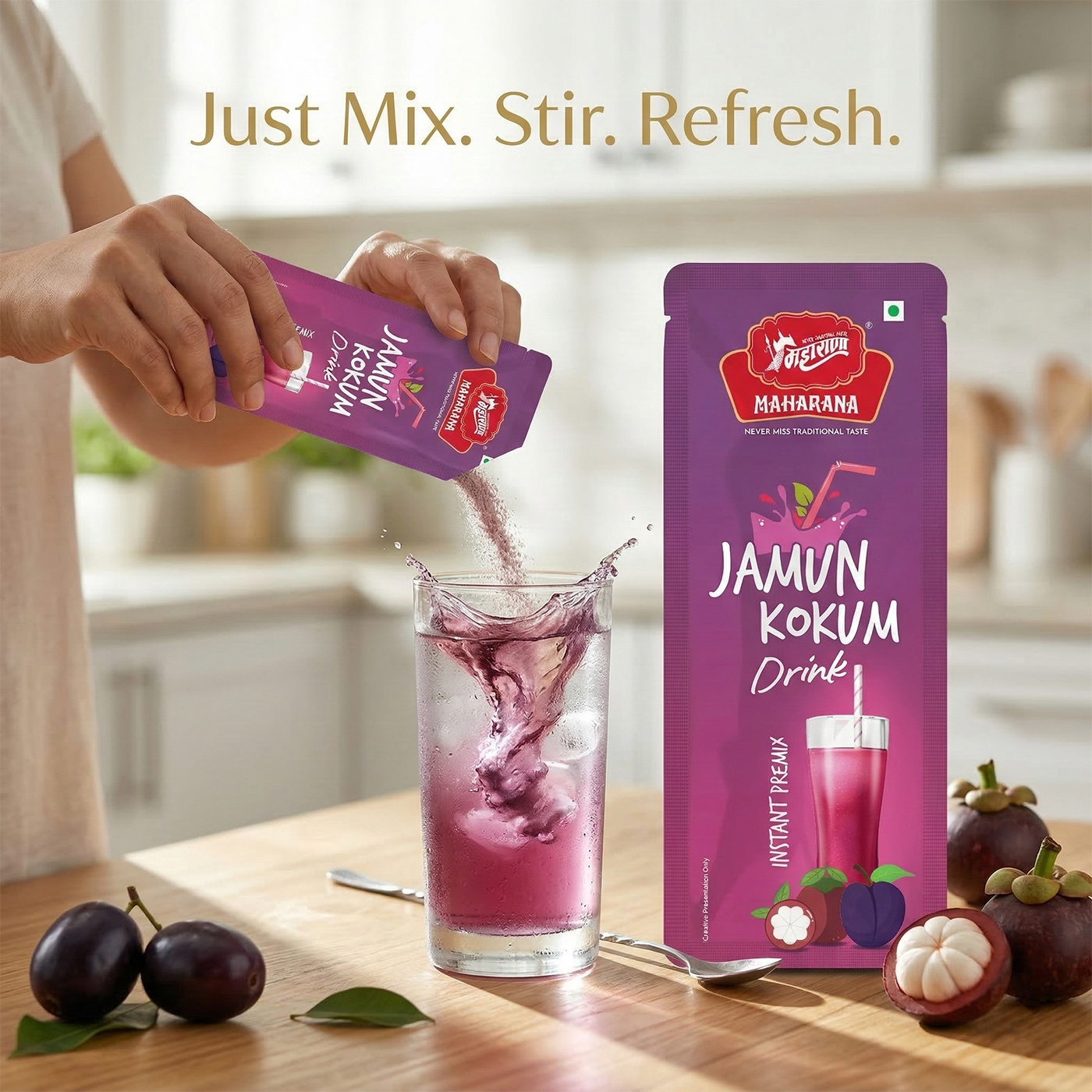 To prepare the drink, simply add the instant jamun kokum drink powder to water, mix well, and enjoy. it dissolves quickly, providing a refreshing beverage within seconds.