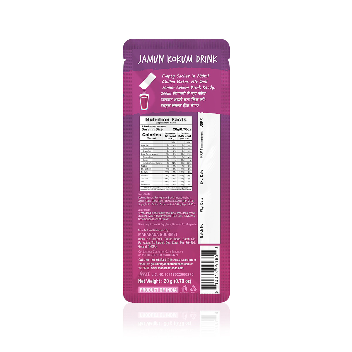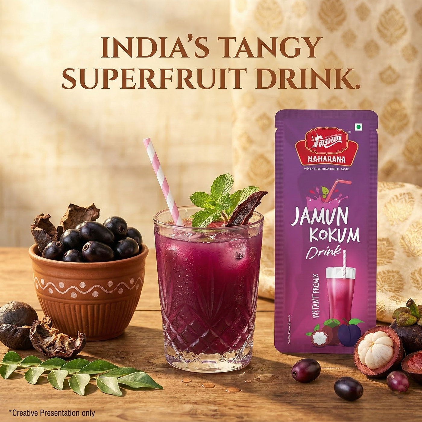 The drink offers a tangy and cooling effect which can help rejuvenate and refresh. jamun and kokum are known for their antioxidant properties, aiding digestion and supporting overall health.