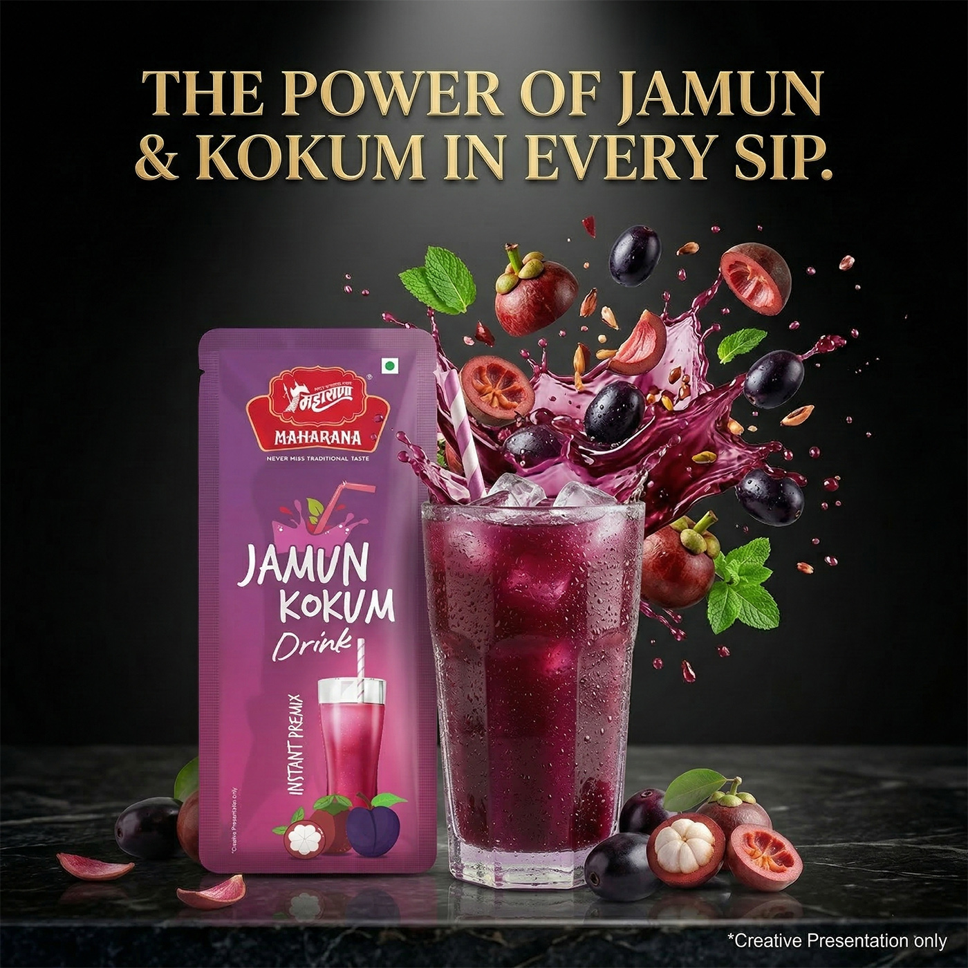 Instant jamun kokum drink is a refreshing instant drink powder that combines the rich taste of indian superfruits jamun and kokum. it is designed to be an easy-to-make tangy and cooling beverage.