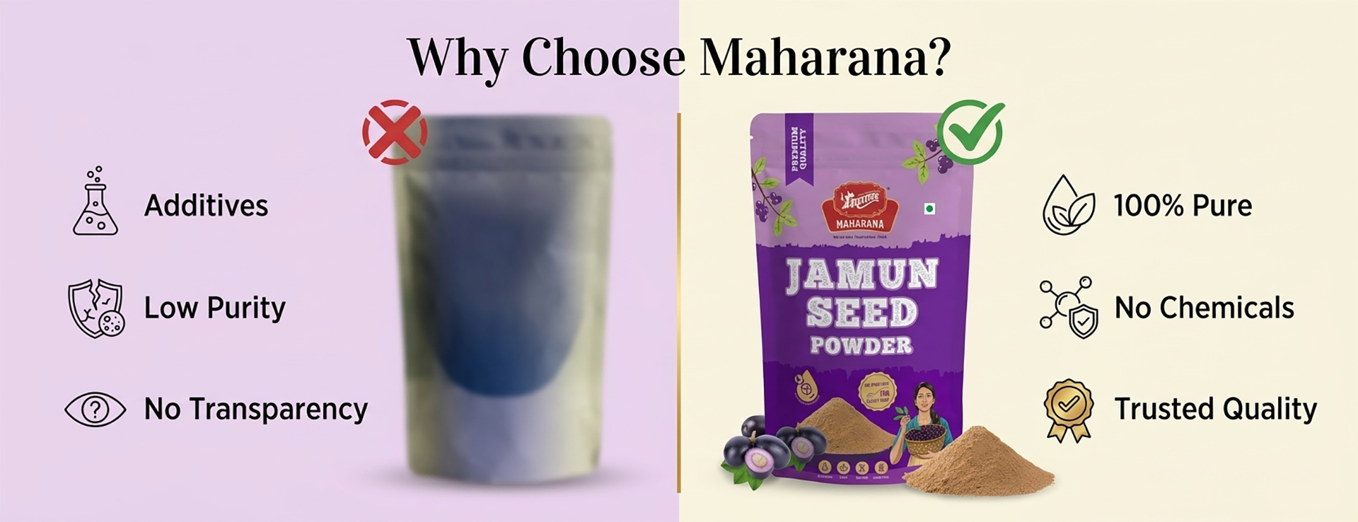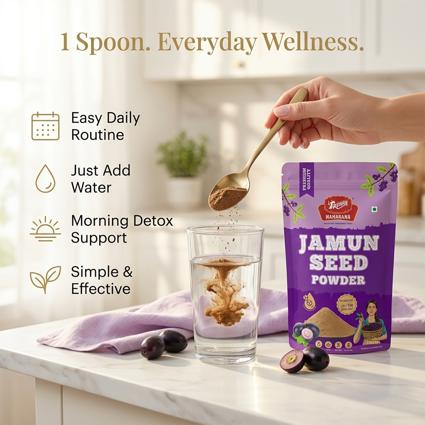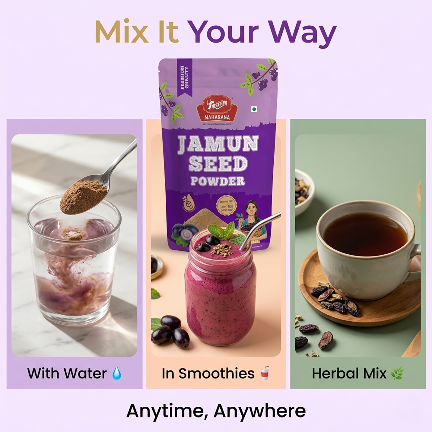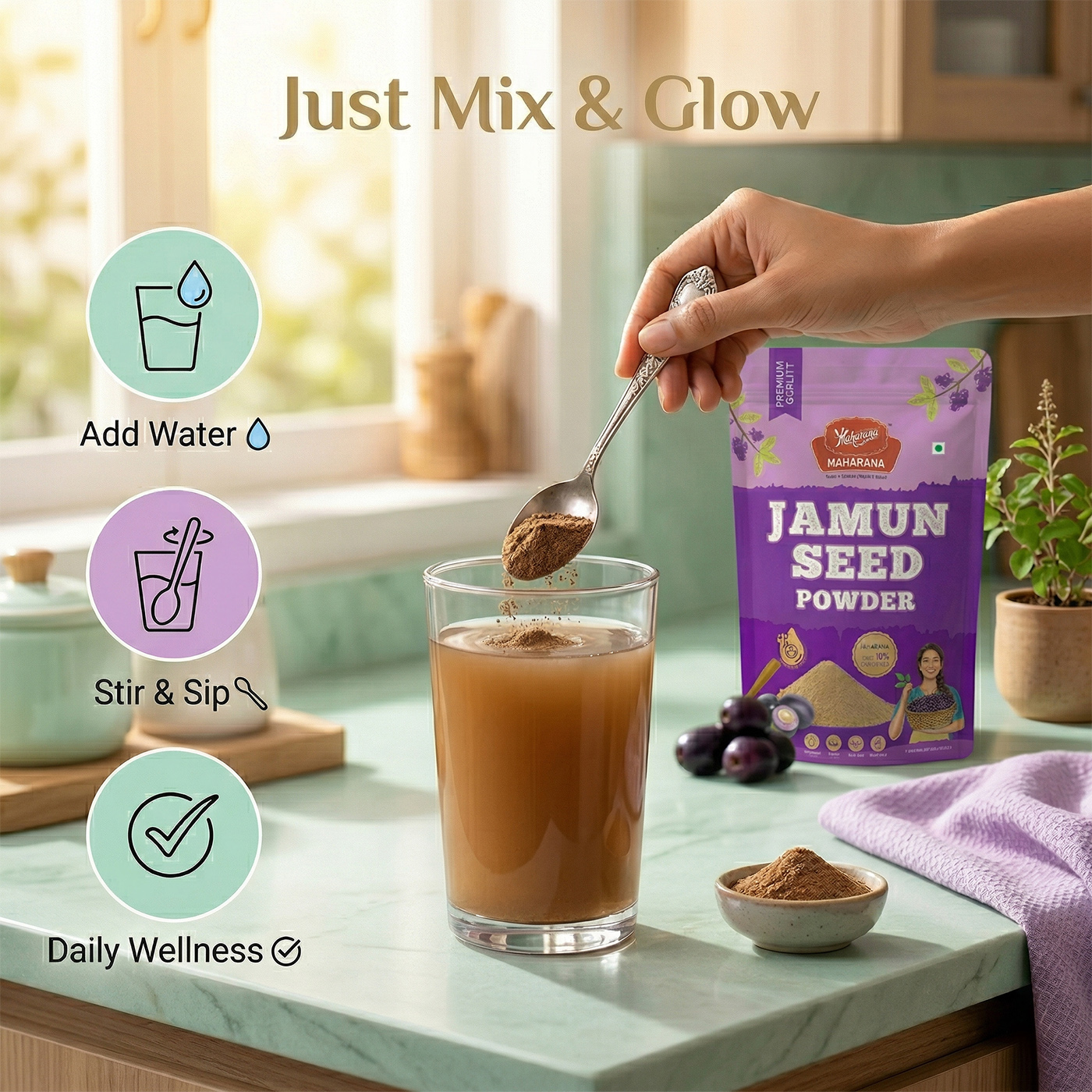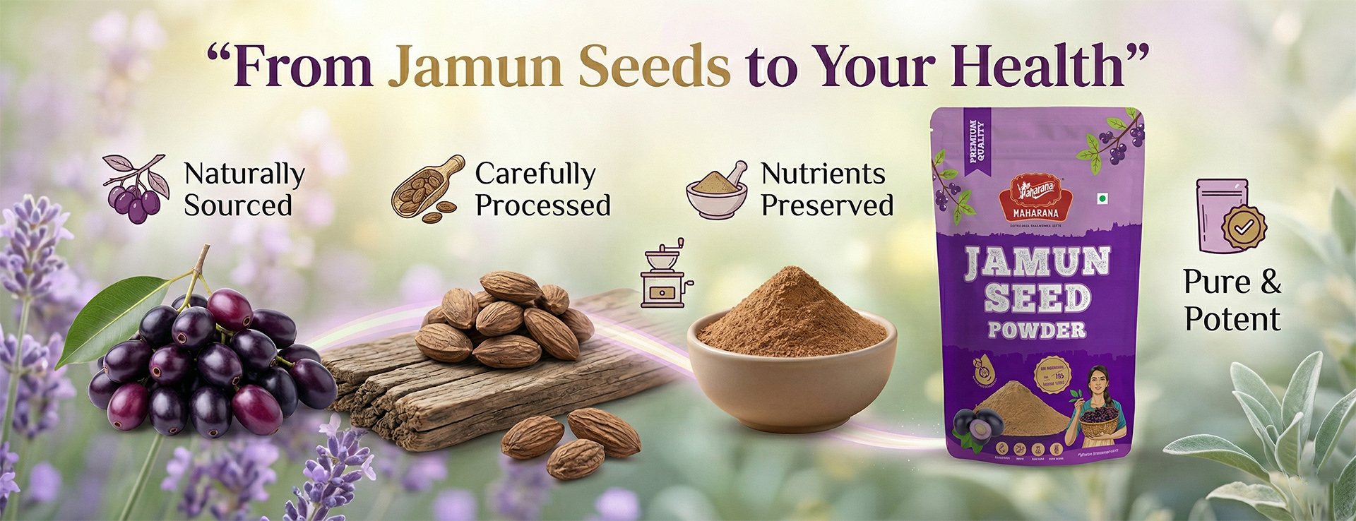 Jamun seeds powder works by aiding the digestive system and promoting healthy metabolism. its natural compounds help in maintaining blood sugar levels and overall wellness.