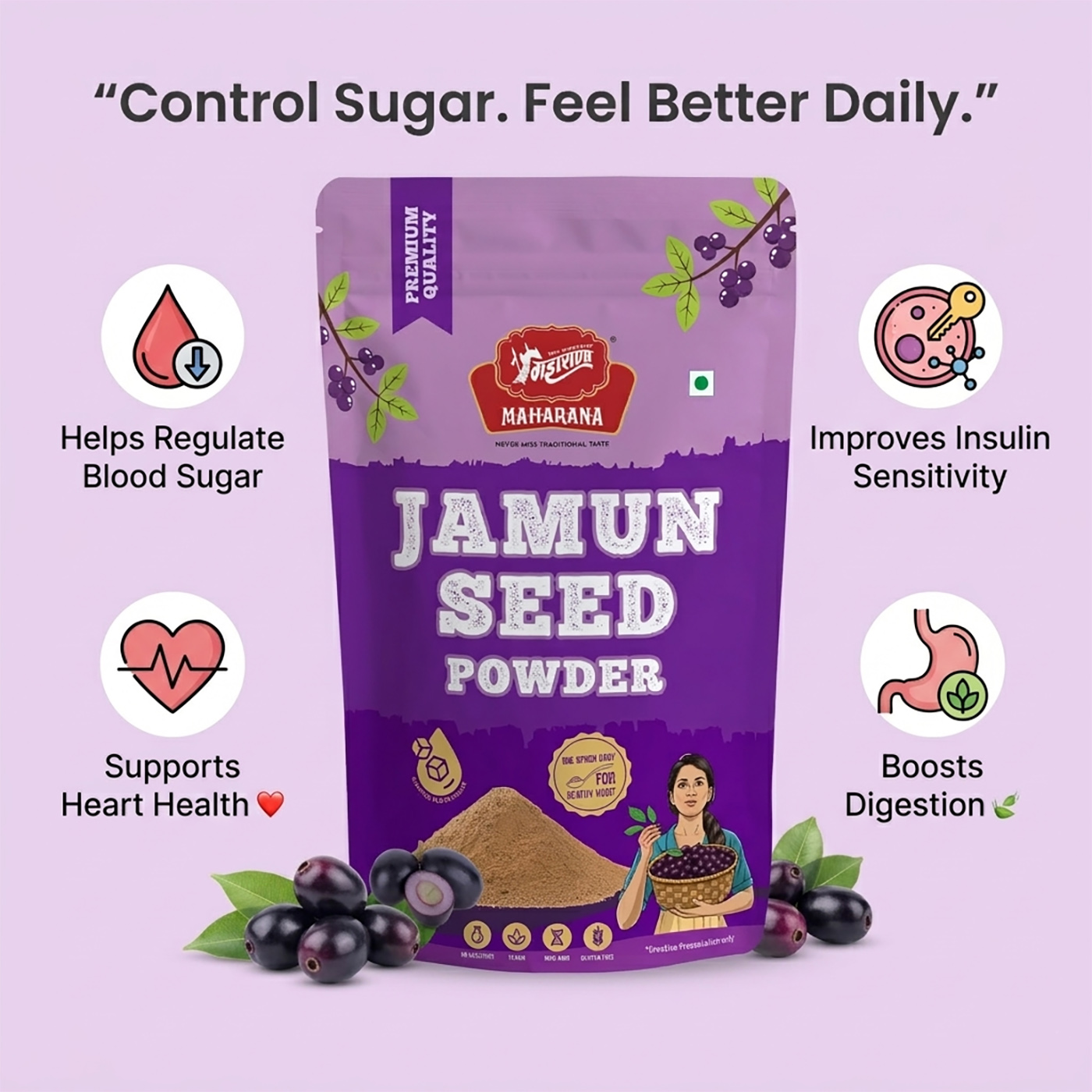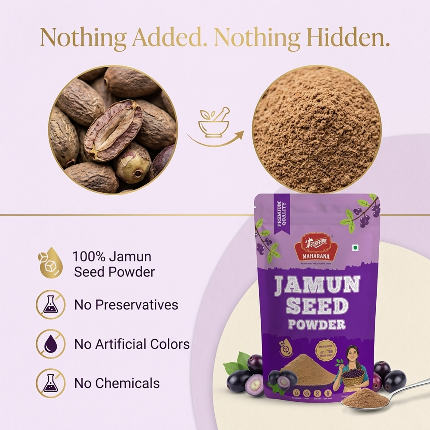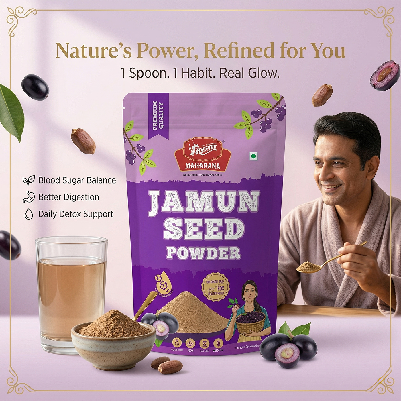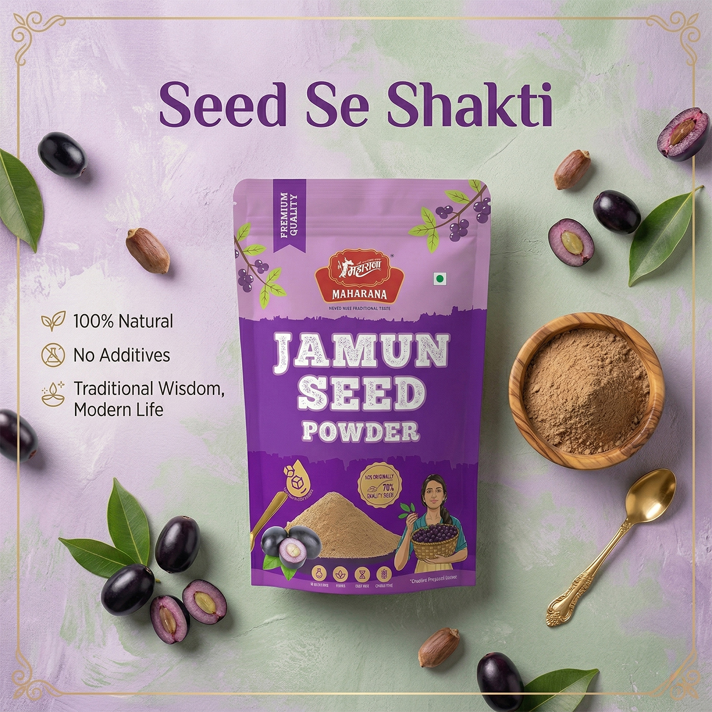 Jamun seeds powder is a natural ayurvedic product made from finely ground seeds of the jamun fruit. it is known for its benefits in supporting digestion and metabolism.