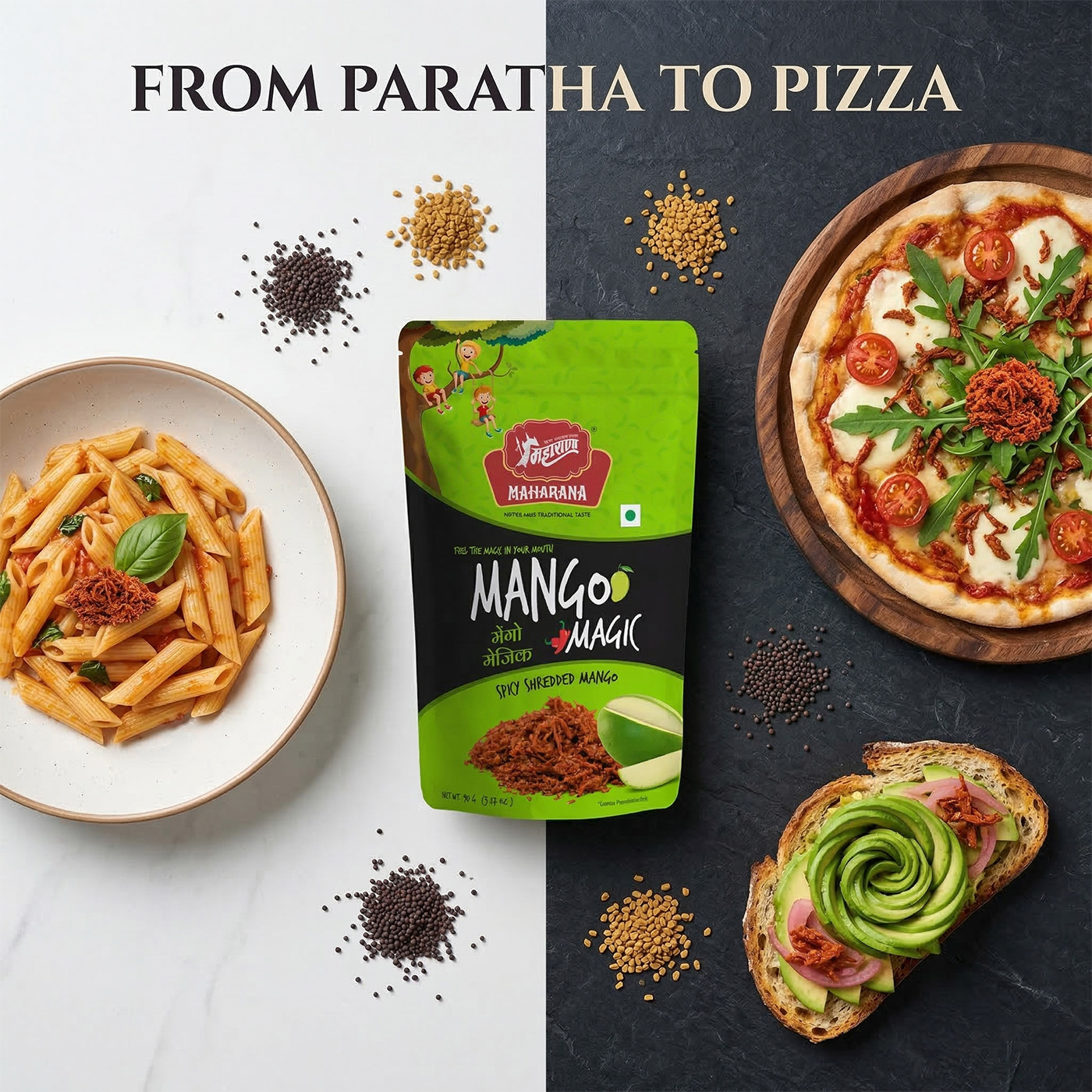 Mango magic adds a tangy, spicy flavor to your meals enhancing taste and appetite. it can make simple dishes like paratha, upma, and khichdi more enjoyable and flavorful.