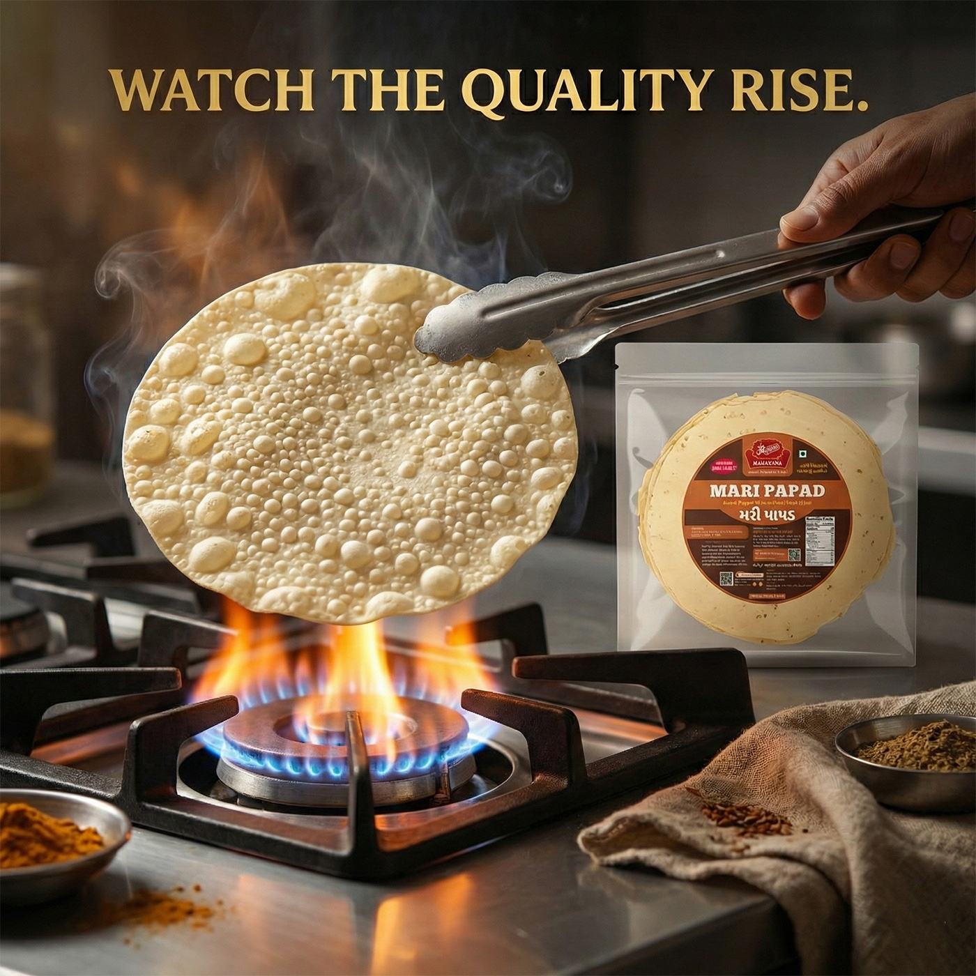 When roasting or frying, handle the papad carefully to avoid burns from hot oil or flame, and cook until crisp but not burnt.