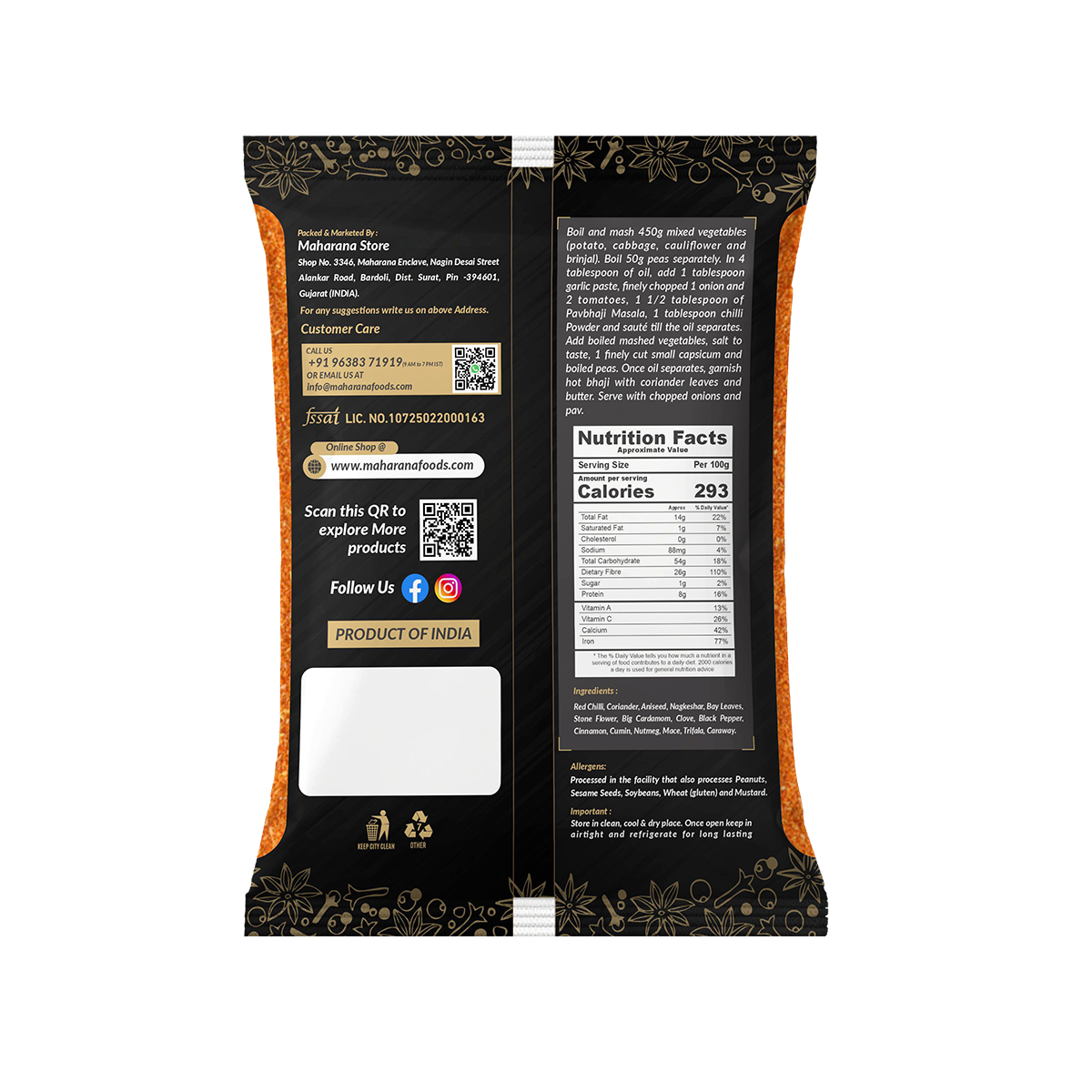 Pavbhaji masala is a special spice powder blend prepared from the finest ingredients and flavors, used primarily to make pav bhaji, a popular indian street food.