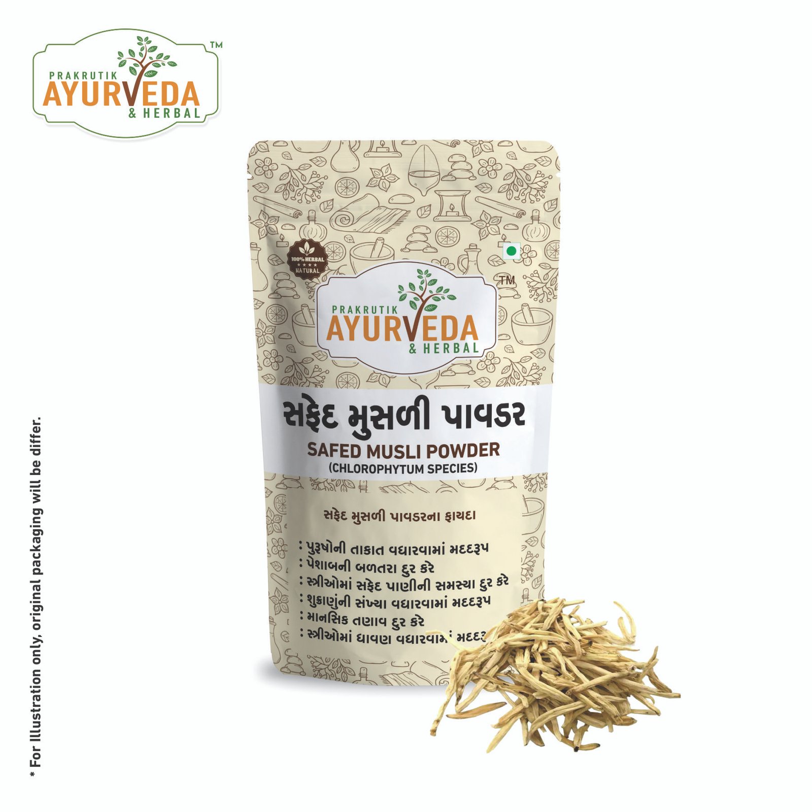 Pr safed musli powder is a herbal supplement made from 100% pure safed musli root, used in ayurveda for boosting energy, stamina, and overall vigor.