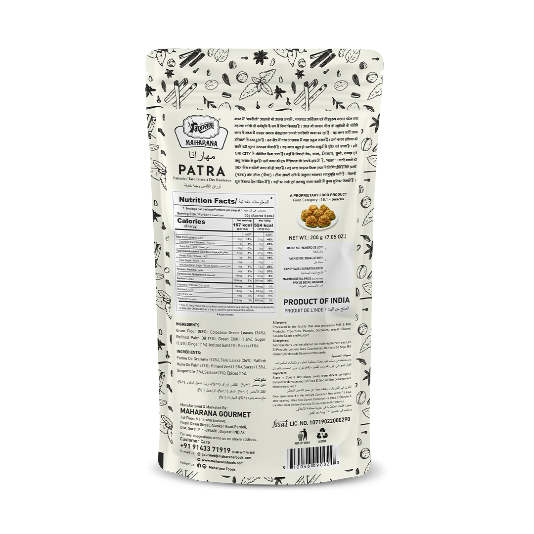 Premium patra offers a nutritious and tasty snack option that is free from artificial colors and preservatives. it combines the health benefits of colocasia leaves with traditional indian spices known for their digestive properties.