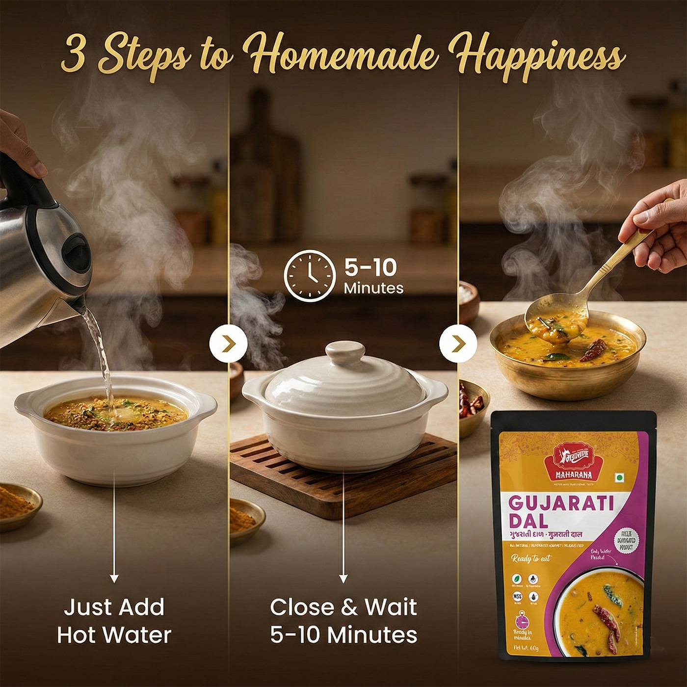 How do i prepare maharana ready to eat gujarati dal?