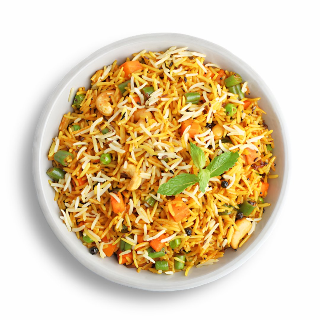 Veg biryani is a ready-to-eat flavorful rice dish made with basmati rice, mixed vegetables, and whole spices. it is prepared using premium all-natural ingredients without artificial colors, flavors, or preservatives, making it a healthy and convenient meal option.
